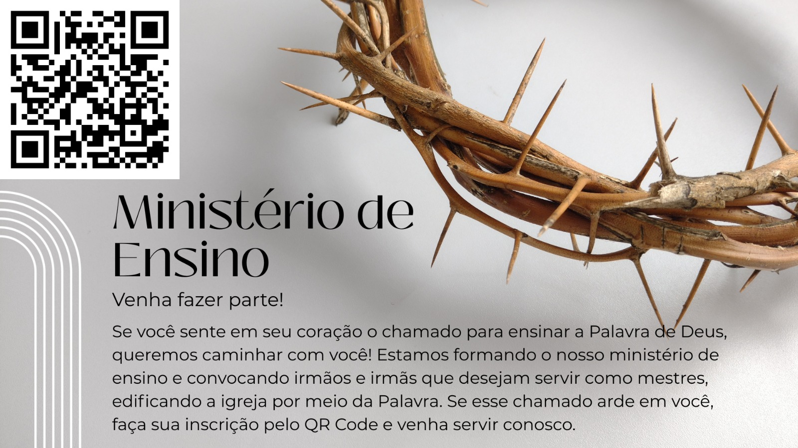 Estamos formando o Ministério de Ensino e convidamos você que carrega no coração o chamado para ensinar a Palavra de Deus.